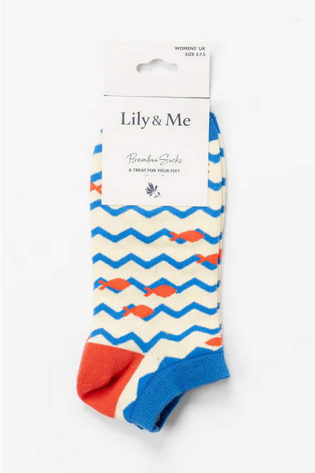 Lily & Me Fish in The Sea Bamboo Trainer Socks