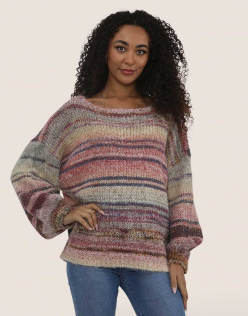 MULTI COLOUR STRIPE FLUFFY KNIT JUMPER