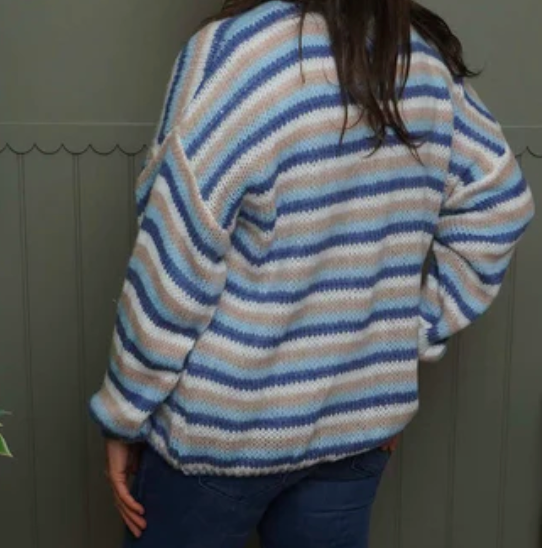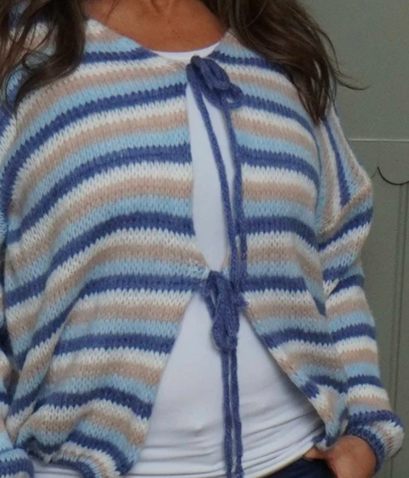STRIPE TIE KNITTED CARDIGAN - BLUE