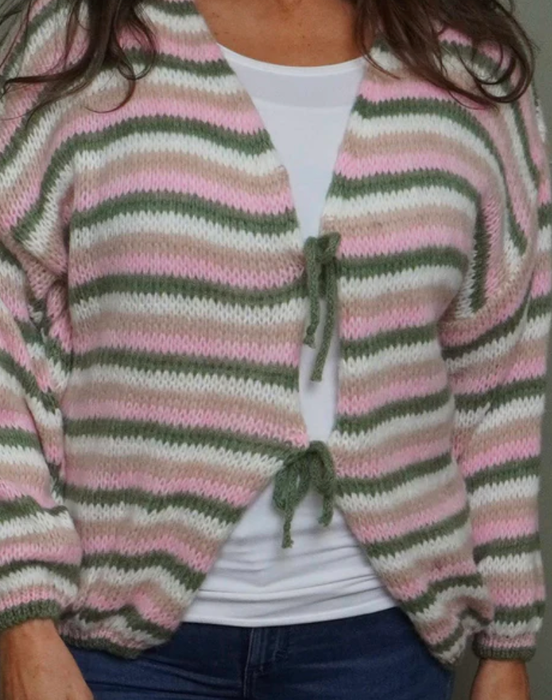 STRIPE TIE KNITTED CARDIGAN - PINK